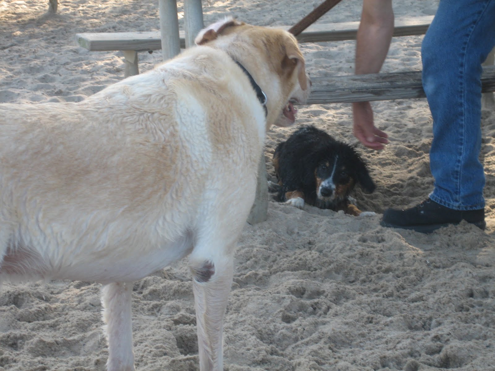 One other thing the doggy parks and beaches do is provide a place for my hubby to talk to people. He is a people person and loves to talk to complete strangers, find out their dog's name, history, age, etc. and tell them all about how we got Spirit. Today was no exception---among others, we met an older man with a yellow lab named Charlie. The man said he's been taking Charlie to the doggy beach every day for the last 11 years---summer, winter, rain , or shine. He was an interesting gentleman and obviously a dog lover.